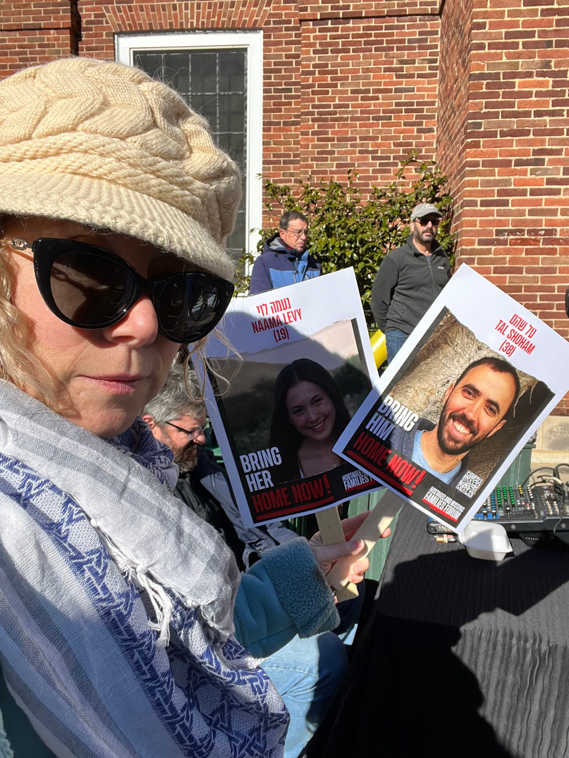 Today marked a pivotal moment as my community assembled for a rally, united in honoring the hostages enduring ONE HUNDRED DAYS of captivity, fervently demanding their release. We held signs high, adorned with the names of the one-hundred twenty-nine hostages as we traversed from one end of the main street to the town square. Amidst the crowd, I walked behind two older individuals who shared a poignant connection.